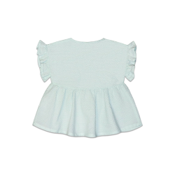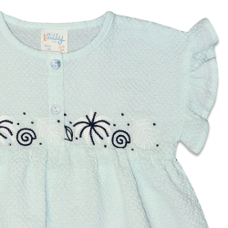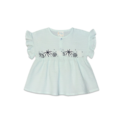 Folho nas mangas e bordado no peito.